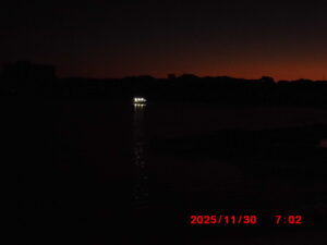 寒さが増した早暁に釣り場へ向かう遊魚船
